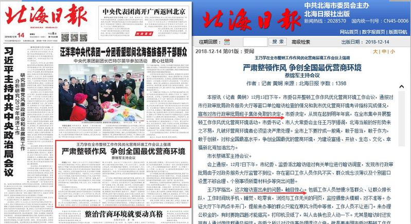 2018年12月13日下午,广西北海市委召开大会,向全市副处级以上干部宣布对市行政审批局班子集体免职的决定。广西《北海日报》曾公开通报了这一消息。北海市委为此震怒,我们一起来看看。